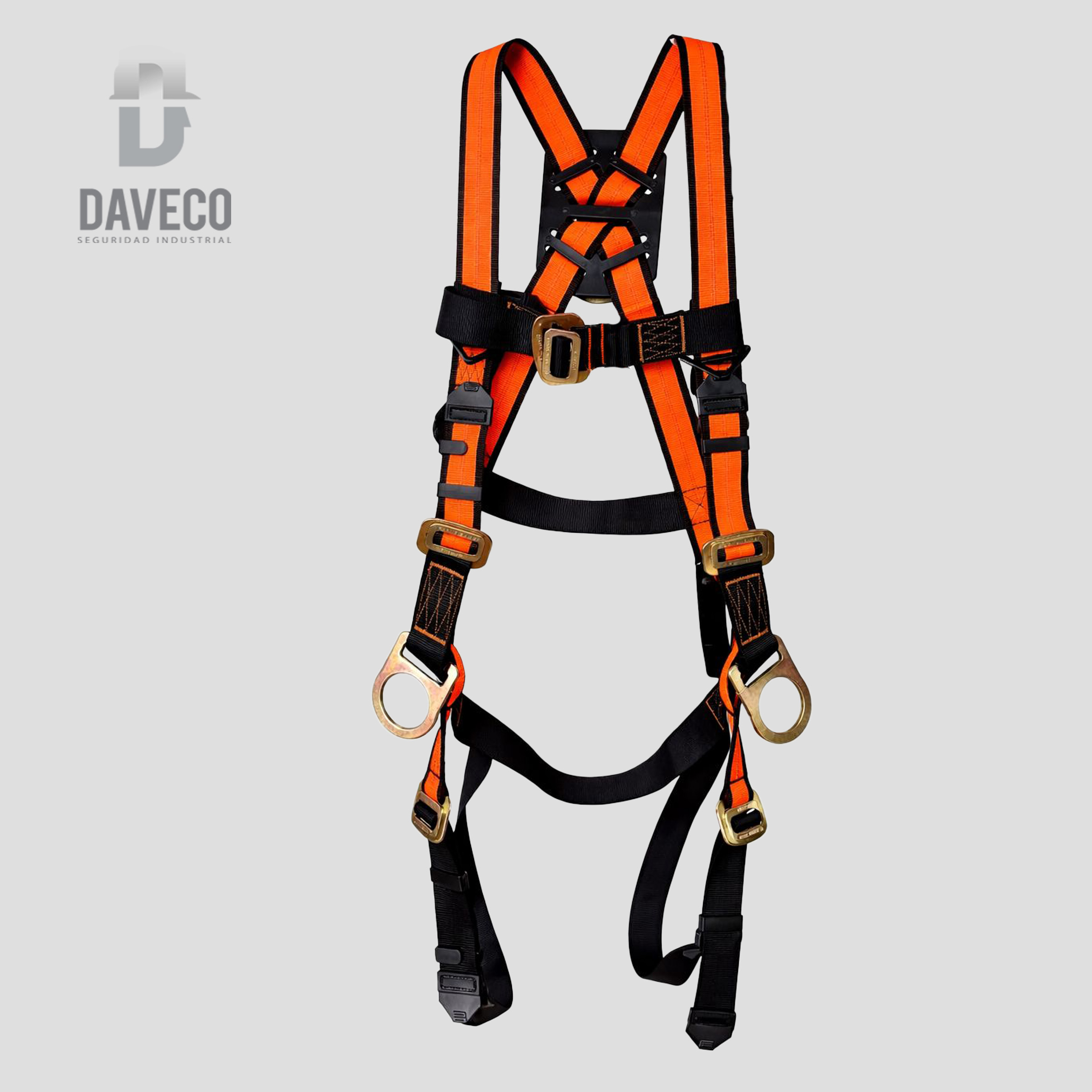 Detalles: 1 anillo dorsal forjado de alta resistencia, 2 anillos para cintura para posicionamiento (clase P) y restricción de viaje. 5 puntos de ajuste, diseño especial y plato en espalda de polietileno de alta resistencia.